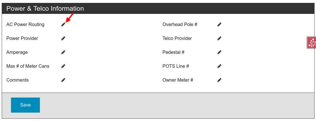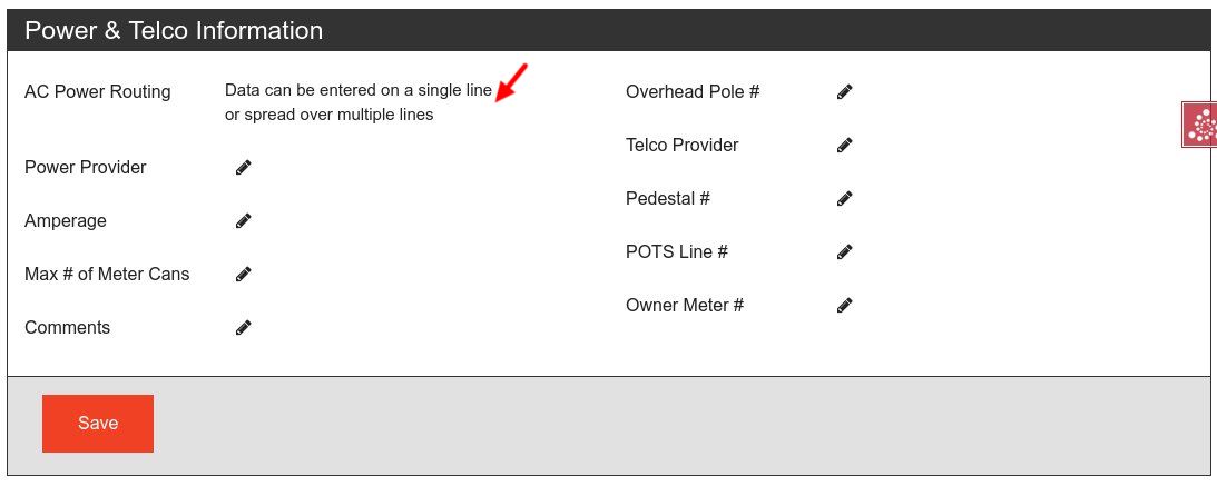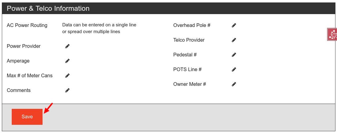 Sections with data that has been changed will be flagged with a red "Save" button. You must click the "Save" button to commit changes to the database.