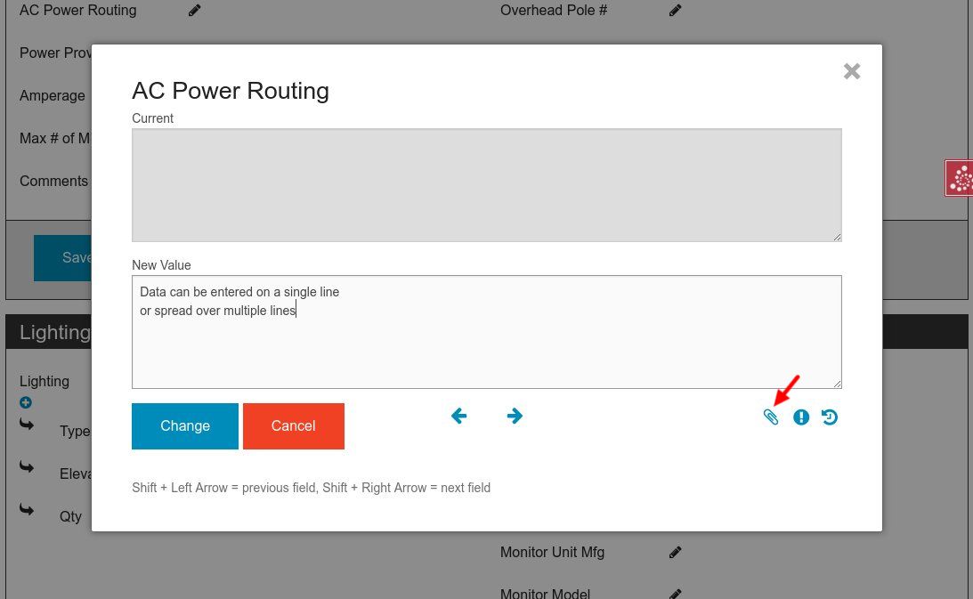 Attributes without any existing data will show the "edit pencil" icon. Attributes with data will display that data. Click on either to open up the data entry dialog.
