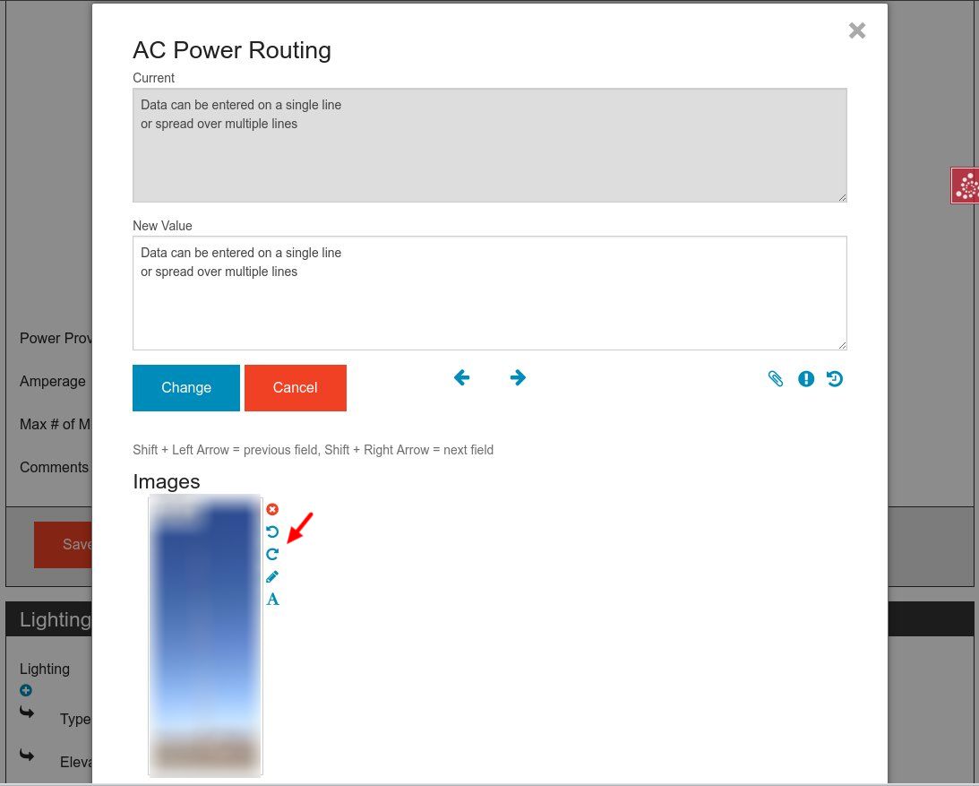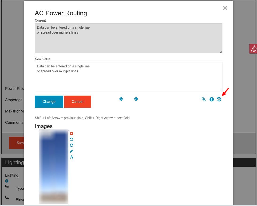 To quickly jump to the next attribute in the report, navigate with the arrow buttons, or by holding the "Shift" key and pressing either the left or right keyboard keys. When navigating with one of these methods, any changes made will be set in the report, but not saved to the database until explicitly done so using the save section button outside of the data entry dialog.